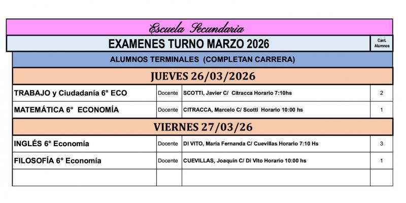 EXÁMENES TERMINALES - COMISIONES DE EVALUACION 2026