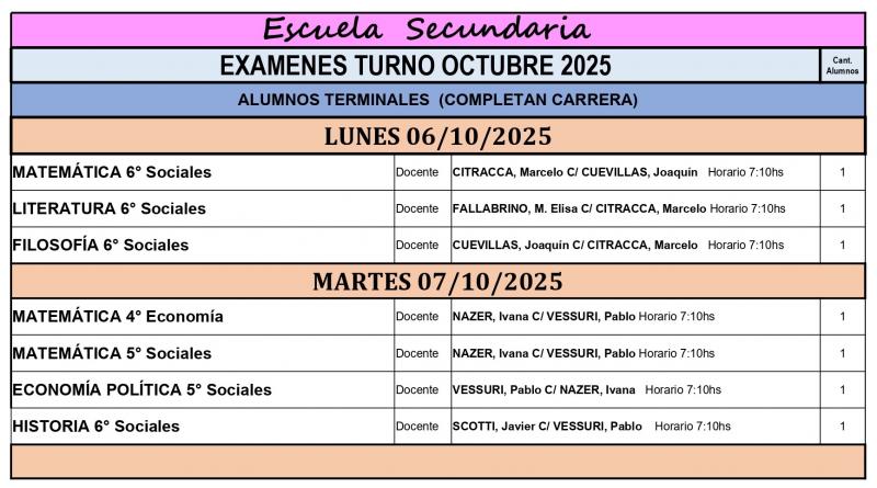 EXÁMENES TERMINALES - FECHAS OCTUBRE 2025